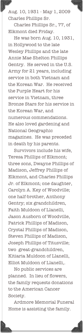 A son, brother, uncle, husband, father, grandfather, great-grandfather, comrade, dear friend, and my PawPaw, you are dearly missed.
